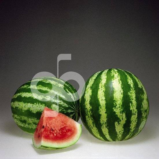 Fructele au forma rotunda, pot ajunge la maturitate la 10-12 kg. Culoarea fructului este verde deschisa cu dungi verde inchise, pulpa este rosie crocanta cu o excelenta textura si gust dulce.