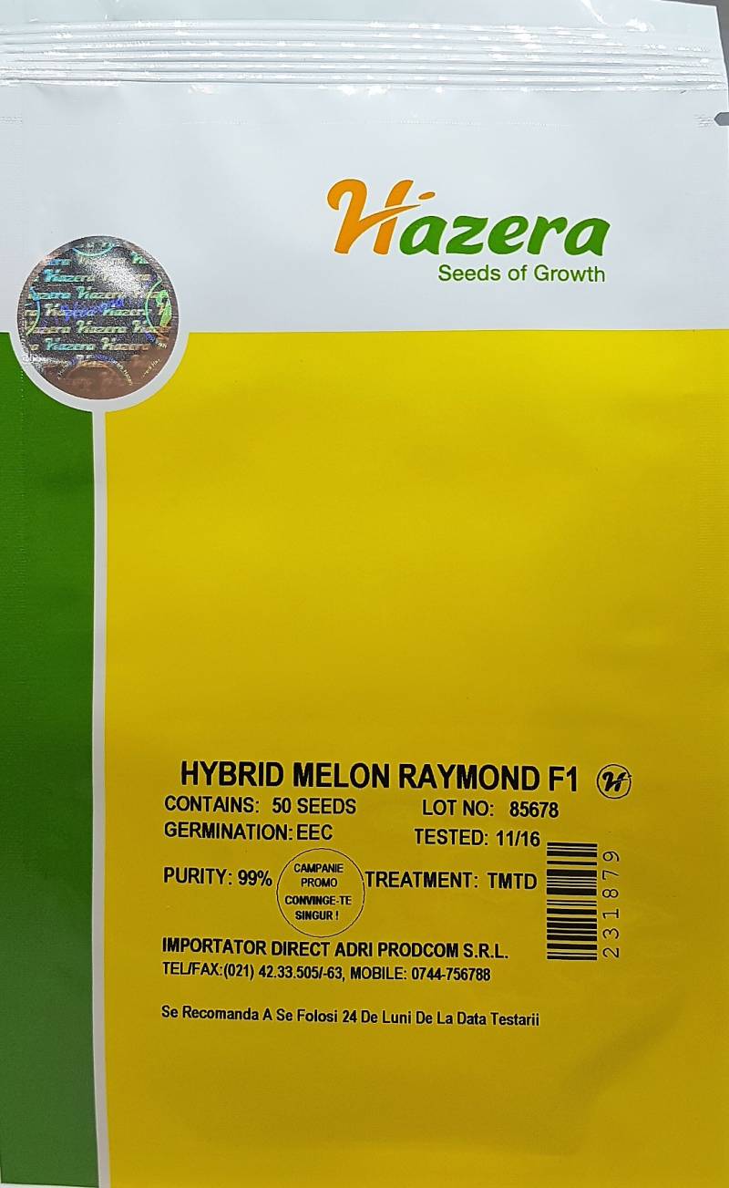 Hibrid la care iese in evidenta marimea fructelor, pe langa o savoare specifica acestui tip de pepene galben. Putem vorbi de o greutate medie pe fruct de 3 kg, avand si un procent important de pepeni care depasesc aceasta greutate. Daca tinem seama ca aceasta greutate ridicata este a unui pepene cu nivel ridicat de zahar, cu aroma si parfum specifice, zemos, care nu crapa, atragator si prin culoarea pulpei, intelegem de ce Raymond a devenit repede preferinta cultivatorilor, comerciantilor si consumatorilor care l-au cunoscut. Plantele sunt viguroase si rezistente la fainare, mana si fusarioza....